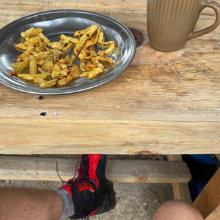 Los geht die Wanderung hoch zur Wiese. Zwischendrin gibts ne kleine Pause mit neuen Bekanntschaften bei Pommes und Chai.